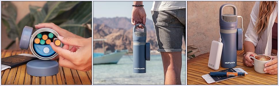 4ALLFAMILY Pioneer Auto Shut Off Medicine Travel Cooler TSA Approved Insulin Cooler (1–7 Medication Pens) 2N1 USB + BIOGEL Portable Medical Bag Diabetes epipen Travel case