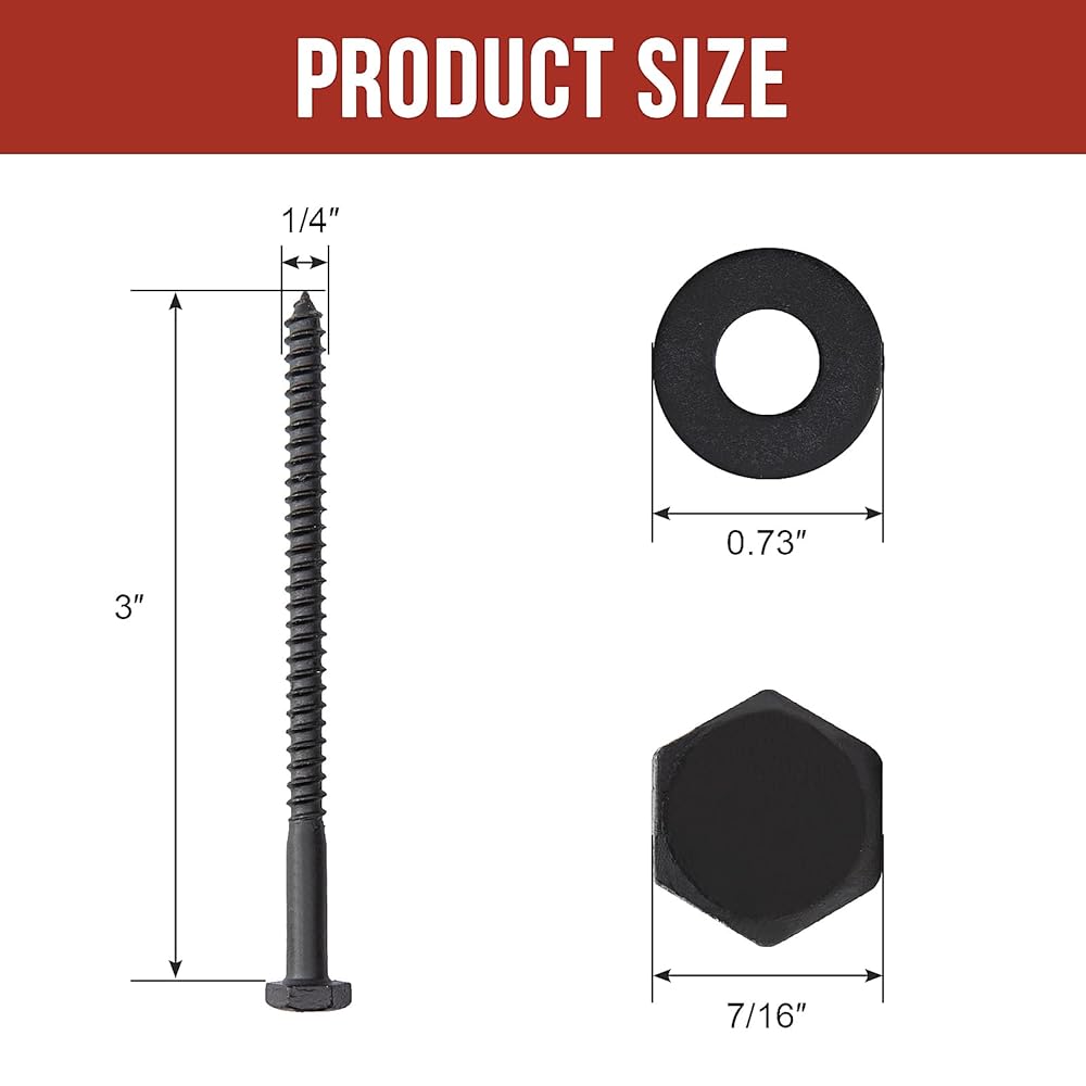 Double Anti-rust Coatings: Made from premium carbon steel. Zinc plated and black ruspert coatings improve lag screws strength and corrosion resistance for outdoor use