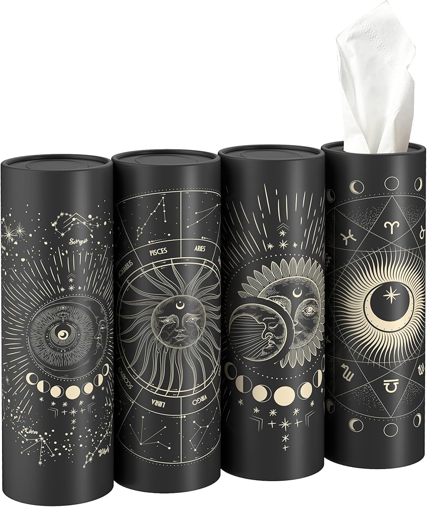 Tarot Moon Phase Design: Our facial tissue holder features a captivating tarot pattern showcasing the moon phases, adding a touch of mystique and elegance to your space.