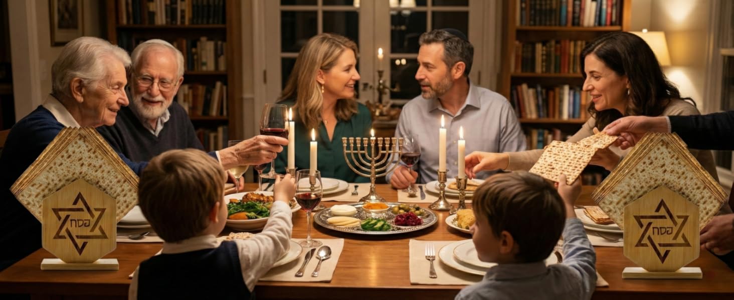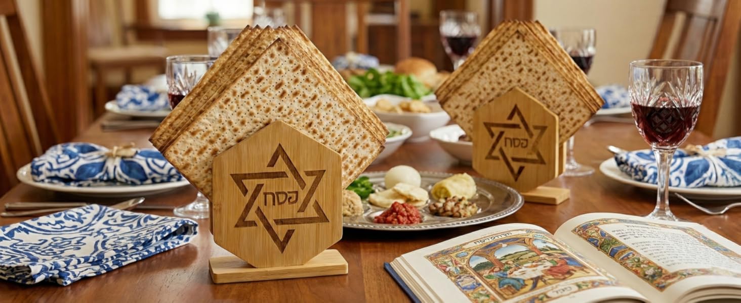 🔯 [DINING & KITCHEN CENTERPIECE] Elegance for the Table - Use the first holder as a stunning modern napkin stand or a serving cradle for routine square crackers. Expertly engraved with the Star of David and Hebrew text (מַצָּה), it serves as a beautiful focal point for family dinners and weekly Shabbat gatherings.