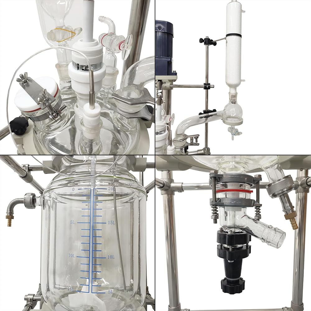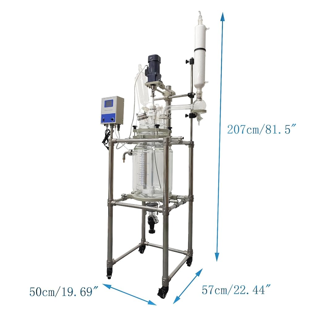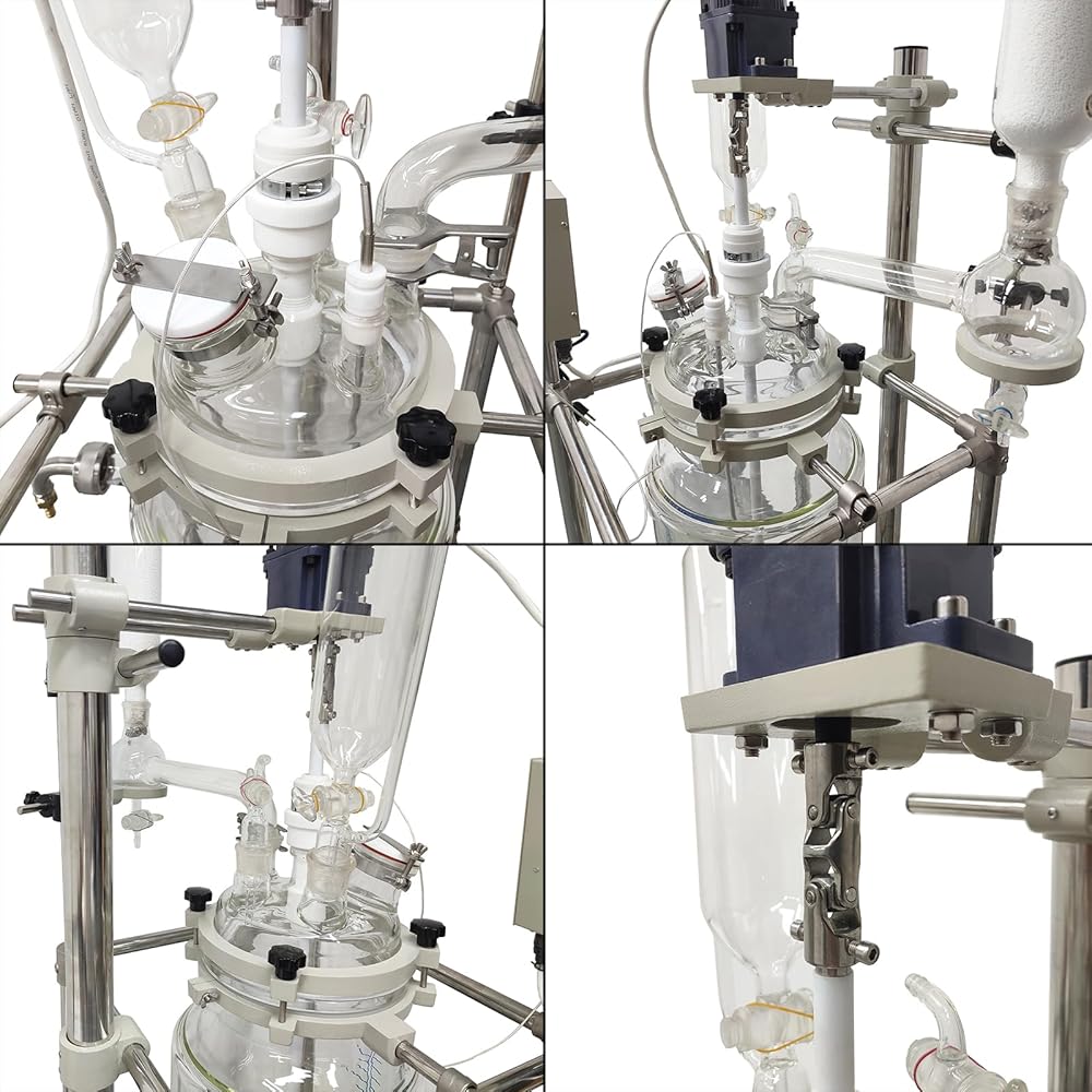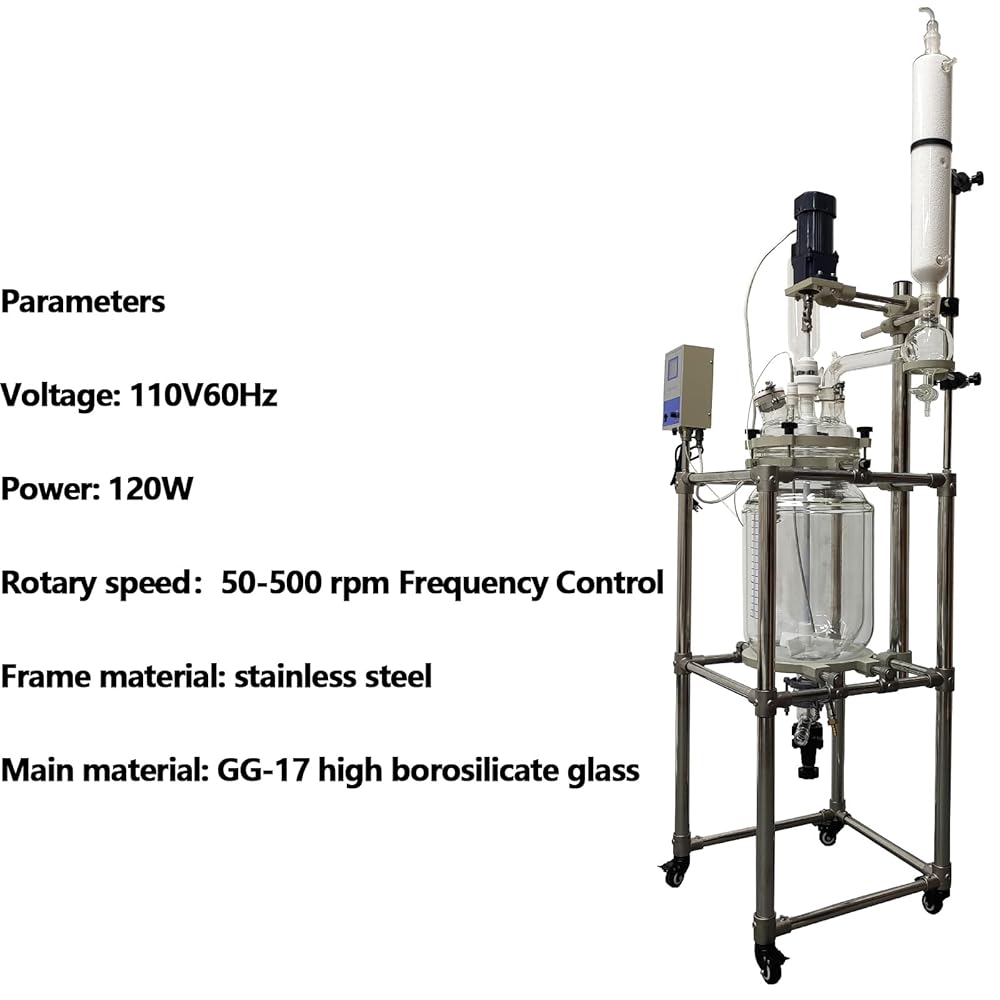 High Quality Material: The glass reactor is made of GG-17 high borosilicate glass with uniform thickness with good performance in physical and chemical properties. Overall Stainless steel (201)frame with strong support and hardness
