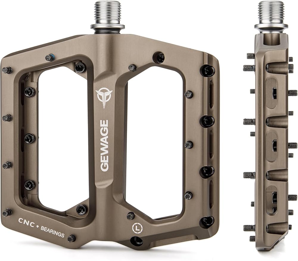 【Wide Platform & Superior Grip】:With a large 126 x 114mm platform, these bicycle pedals provide excellent stability for trail and downhill riding. Each side features 11 removable pins, delivering strong grip while still allowing easy foot repositioning when needed.