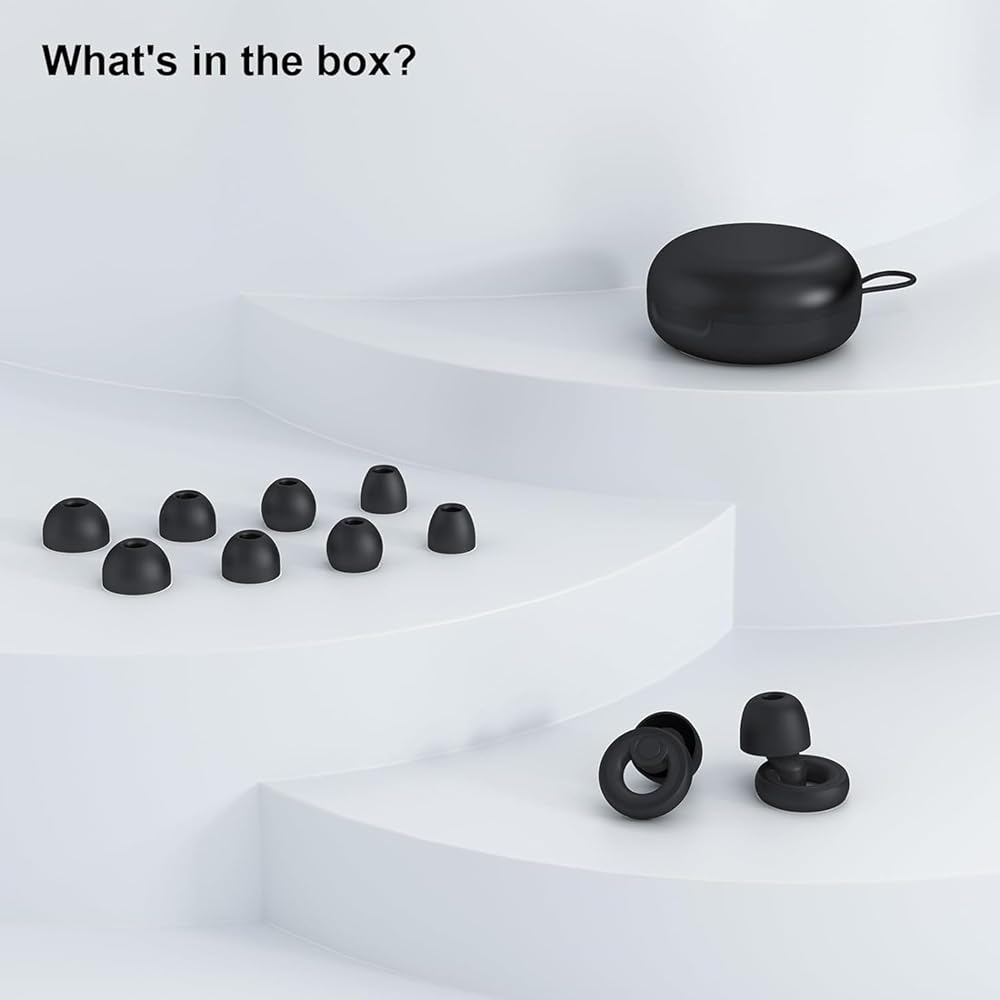 Available in 4 different sizes of ear tips - XS/S/M/L, choose the most suitable one according to your ear canal. Ear Plugs for Sleep – Super Soft, Reusable Hearing Protection in Flexible Silicone for Noise Reduction & Flights - 8 Ear Tips in XS/S/M/L -Black.Hearing Protection Ear Plugs Noise Cancelling 30dB Noise Reduction: According to the test results, noise cancelling ear plugs can effectively reduce the noise of about 28 decibels Various Applicable: Link Dream ear plugs for noise cancelling is suitable for sleep, study, work or read and focusing. As well as reducing noise when travelling or commuting Comfortable for Wearing: Soft and environmentally friendly silicone material makes it more comfortable to wear, no pains or hurts for ear. Multiple Sizes to Choose from: Comes in 4 sizes to suit different ear sizes.Go down a size if it sticks out or hurts, go up a size if it doesn't feel secure or seal off Sustainable Use: earplugs equipped with a portable storage case, ear plugs can be washed and clean, sustainable use is more environmentally friendly