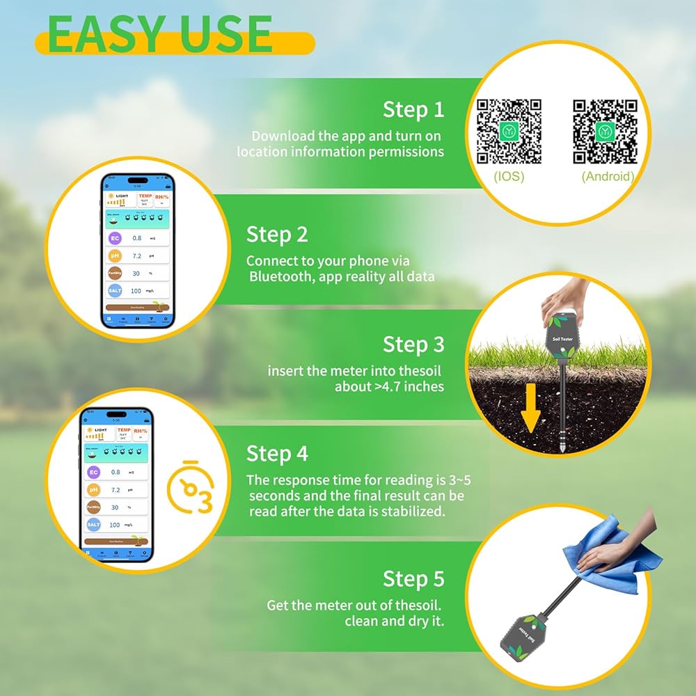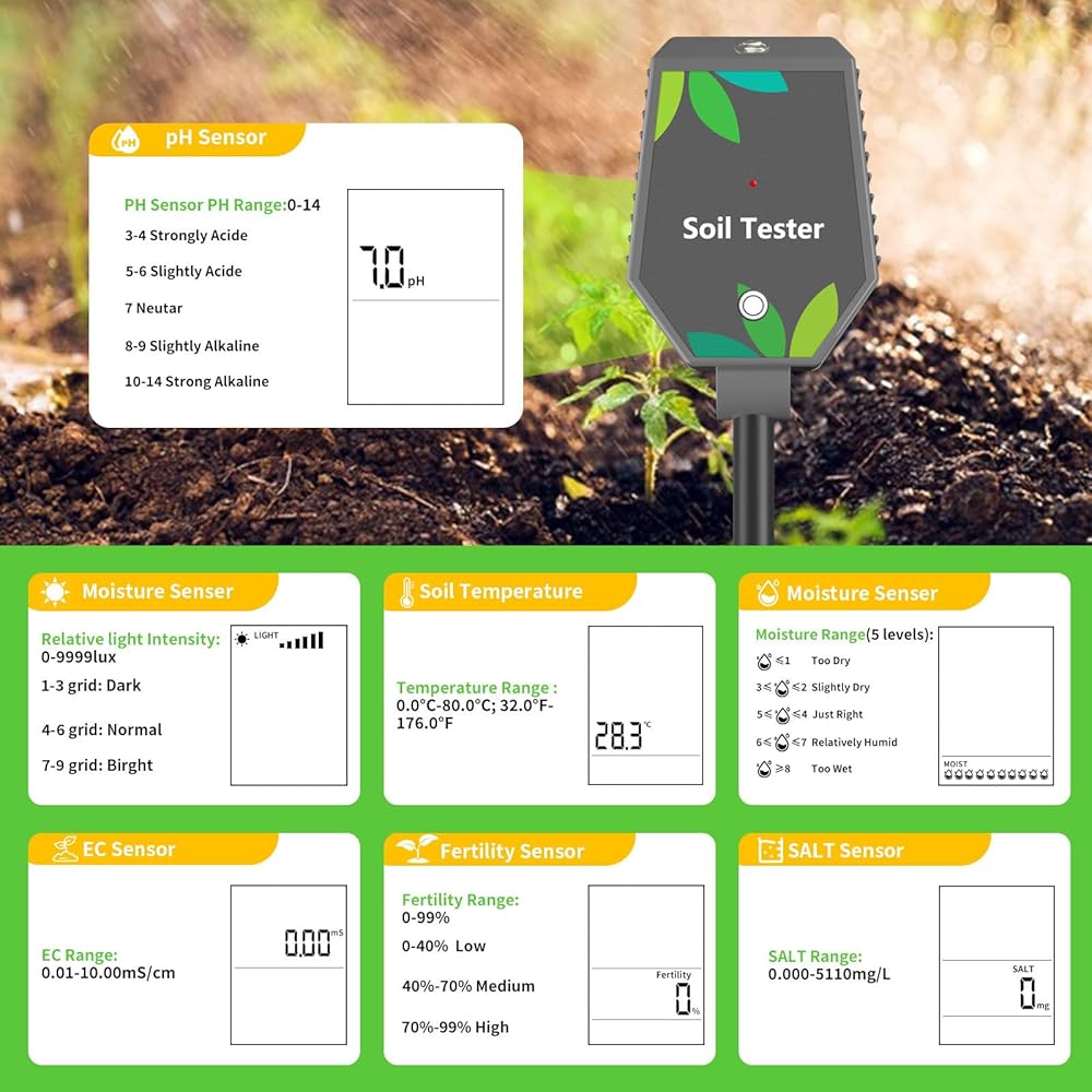 Multifunctional Professional Soil Tester: The Yewhick Professional Soil Tester is suitable for indoor and outdoor use, home gardening, farms, vegetable growing, pot plant growing, flower growing, greenhouse growing, soil testing, etc. Please contact us if you have any problems or concerns with our products. We will give you a satisfactory answer and make your gardening experience enjoyable and successful