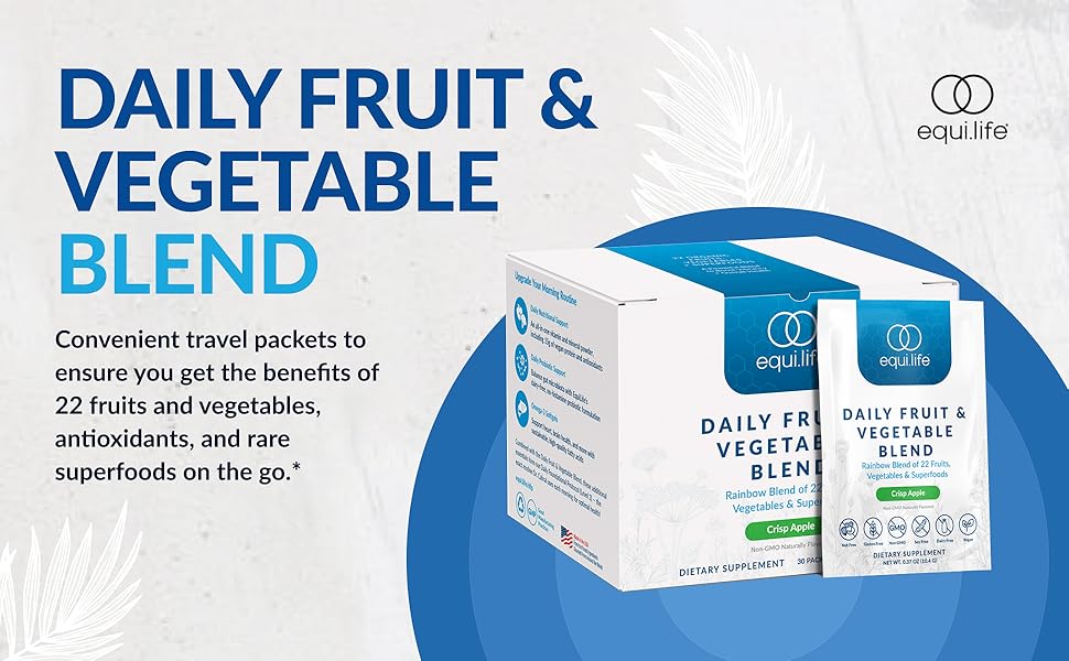 CONTAINS 22 SUPERFOODS: EquiLife's Daily Fruit and Vegetable Blend is a superfood powder that offers more than super greens alone—it combines 22 organic fruits, vegetables, & antioxidants. This supplies your body with a variety of nutrients often left out of the average diet.
