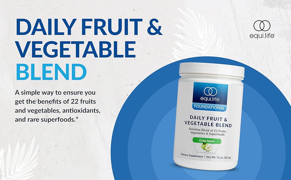 CONTAINS 22 SUPERFOODS: EquiLife's Daily Fruit and Vegetable Blend is a superfood powder that offers more than super greens alone—it combines 22 organic fruits, vegetables, & antioxidants. This supplies your body with a variety of nutrients often left out of the average diet.