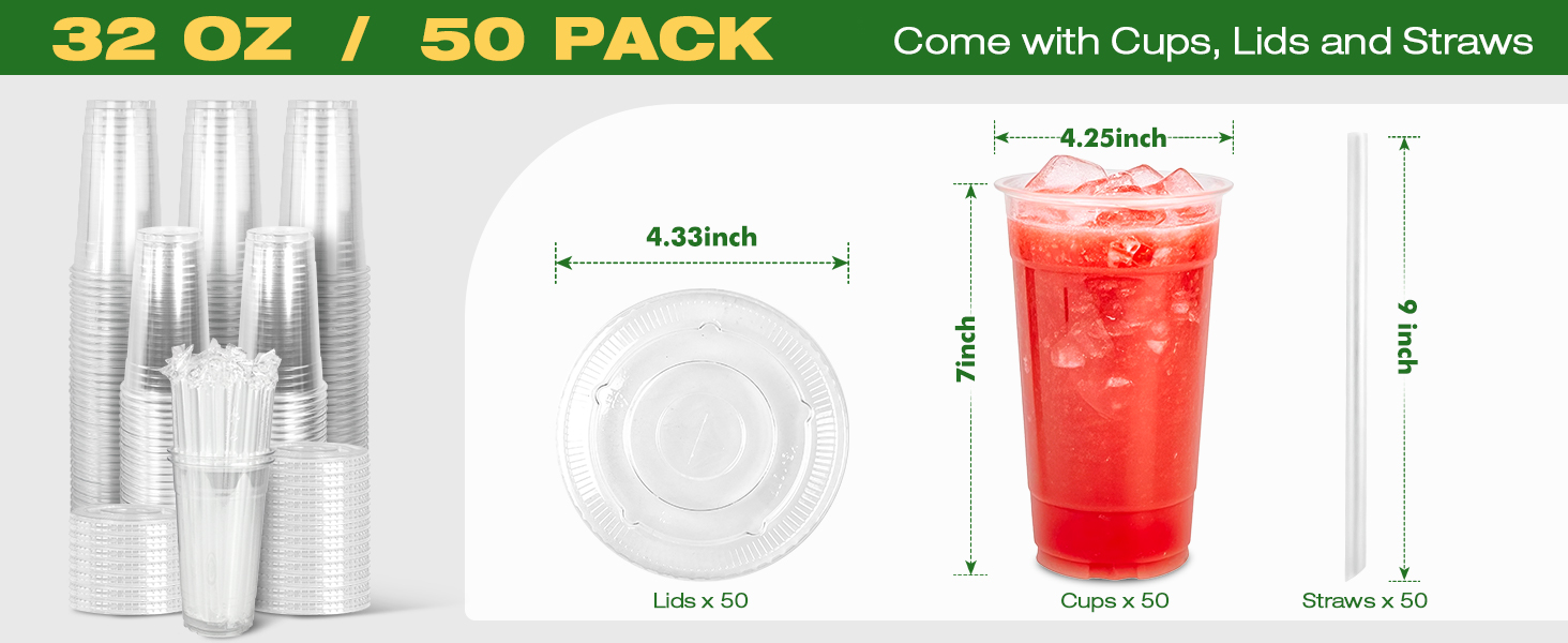 All-in-One Convenience: 50 sets with cups, lids, and paper-wrapped straws—ideal for daily use, events, or small businesses needing ready-to-go drinkware.