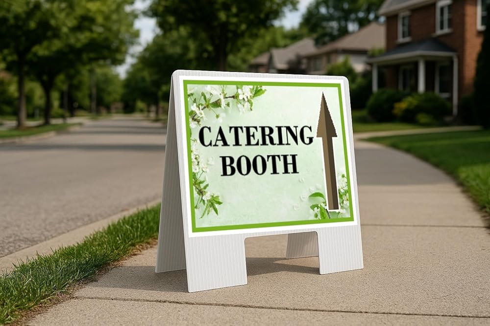 • Freestanding A-Frame Design – No stakes or extra hardware required; sets up in seconds and stands firmly on sidewalks, driveways, or entryways.