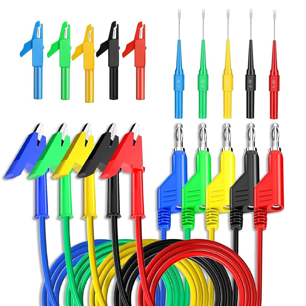 15PCS Back Probe Kit, Stackable Banana Plug to Copper Alligator Clip Test Leads Set with Alligator Clips and Back Probe Pins for Car Repairing Diagnostic Multimeter Electrical Testing 5 Colors