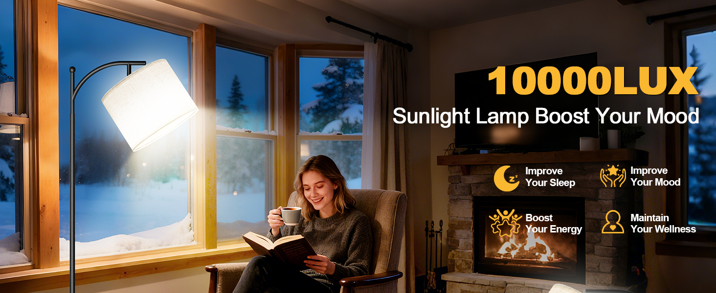 Beat the Winter Blues: Our sun light therapy lamp delivers up to 10,000 LUX at 8–12 inches with 1500 lumens and CRI 97, providing bright, natural light to create a refreshing atmosphere that helps you stay motivated and focused, even in dark winter months