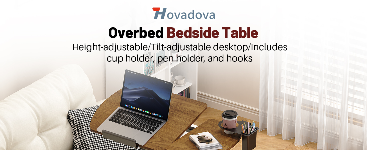 Easy Assembly・Ultra Hassle-Free: Hovadova's over the bed includes all assembly tools and features clear, concise instructions. One person can assemble it effortlessly in just 10 minutes—no professional skills required, saving both time and effort
