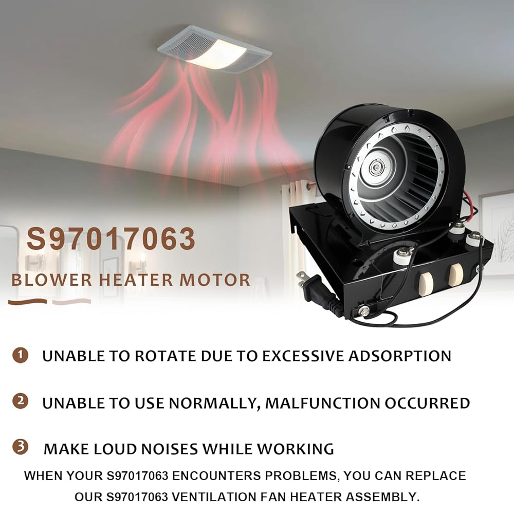 Why replace it:When S97017063 makes mistakes, makes abnormal noises and cannot rotate due to excessive adsorption, you can replace 97017063 blower motor. Our S97017063 is specially designed for your broan 655F heater motor, which can handle high-intensity heating, ventilation and air conditioning, prolong the service life of the S97017063 motor and effectively solve your problems.