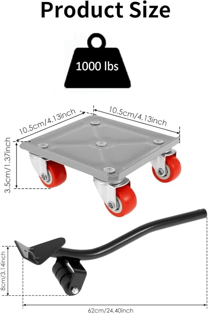 Simplify moving heavy items with this 4-pack steel furniture mover set. Each square dolly features 4 resin swivel wheels for easy maneuvering on smooth floors like tile and wood. Includes non-slip pads to protect surfaces and a pry bar that extends to 62cm for lifting assistance. With a 500kg total capacity, it's ideal for couches, cabinets, or appliances—but avoid use on carpets. Effortless, efficient relocation in one compact kit.