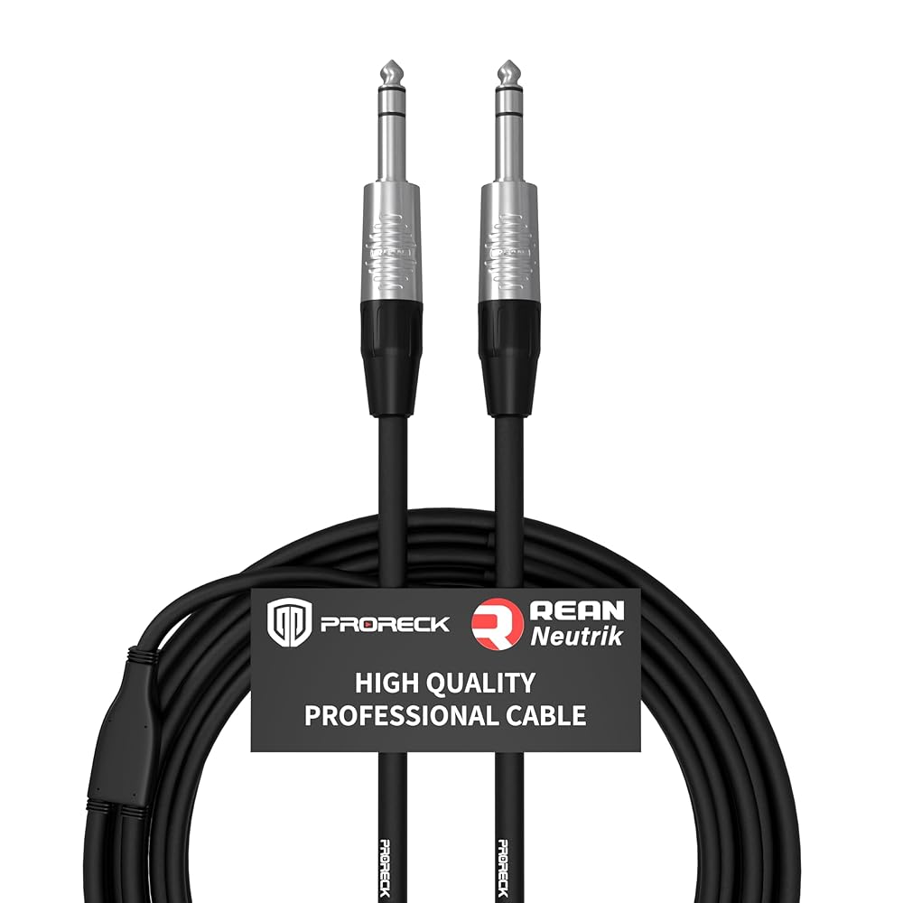 Proreck 6FT Stereo Microphone Cable – 1/4" TRS to 1/4" TRS, Neutrik Rean Connectors, 24 AWG, Ideal for Stage, Studio, and Live Sound Applications