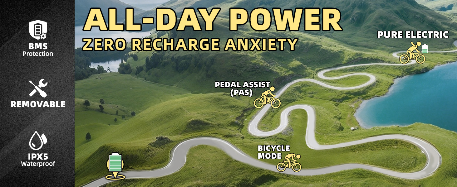 【960Wh Removable Battery】 The QS7 e bike features an industry-upgraded 960Wh lithium pack – UL safety certified and protected by an intelligent BMS that actively:Prevents overcharge/overheating, Extends battery lifespan by 40%. standard packs.IPX4 waterproof construction ensures reliable operation in rain or splashes – delivering unmatched power stability for your Electric Bike for Adults.