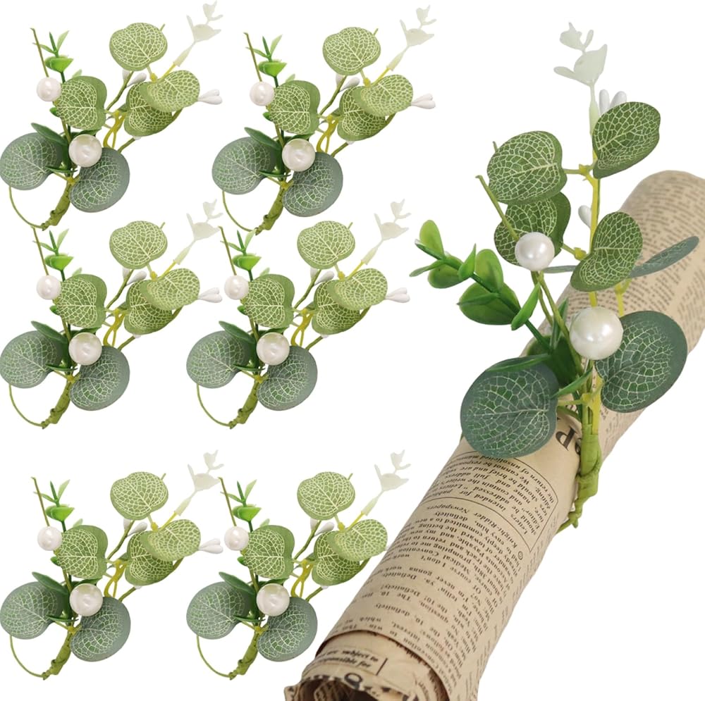 1.This beautifully crafted set includes six stunning napkin holders, each adorned with delicate artificial flower wreaths