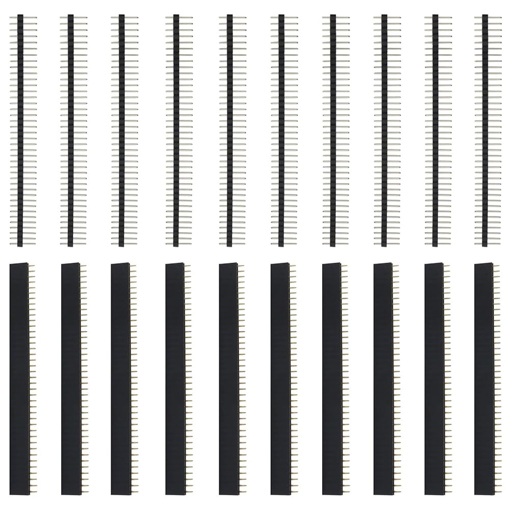 20PCS Durable Breakaway PCB Connectors, 2.54mm Male and Female Pin Header Set Straight Single Row, 40 Pin Header Connector Kit for Arduino Shield/DIY Enthusiasts