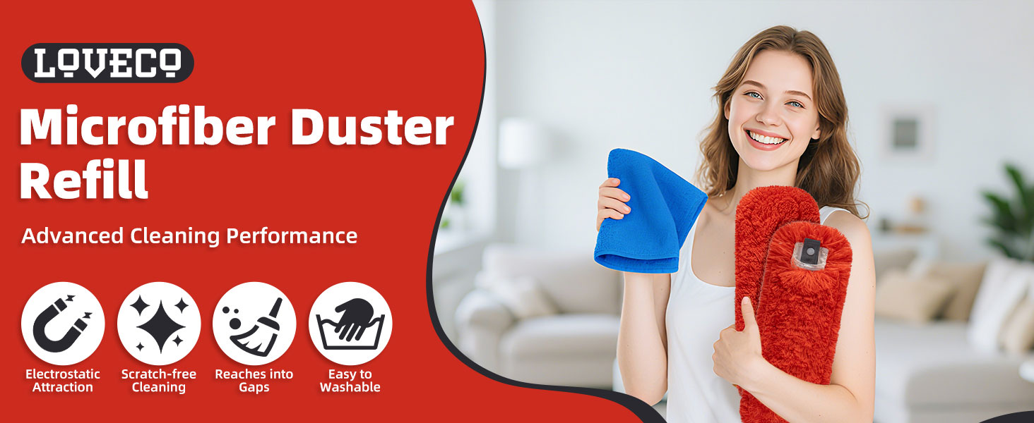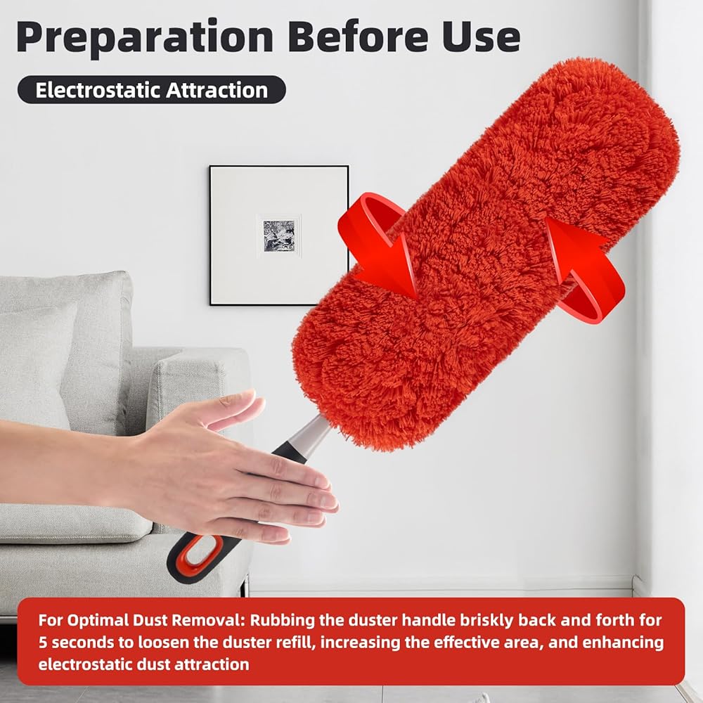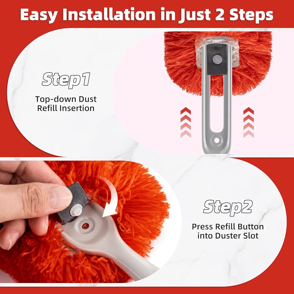 Special Microfiber Duster Refill : These advanced microfiber material features numerous split tip. Simply rub the duster handle in your palm after attaching the refill to fluff it up and activate its strong electrostatic adsorption. Attracting and trapping dust and hair instead of just pushing it around