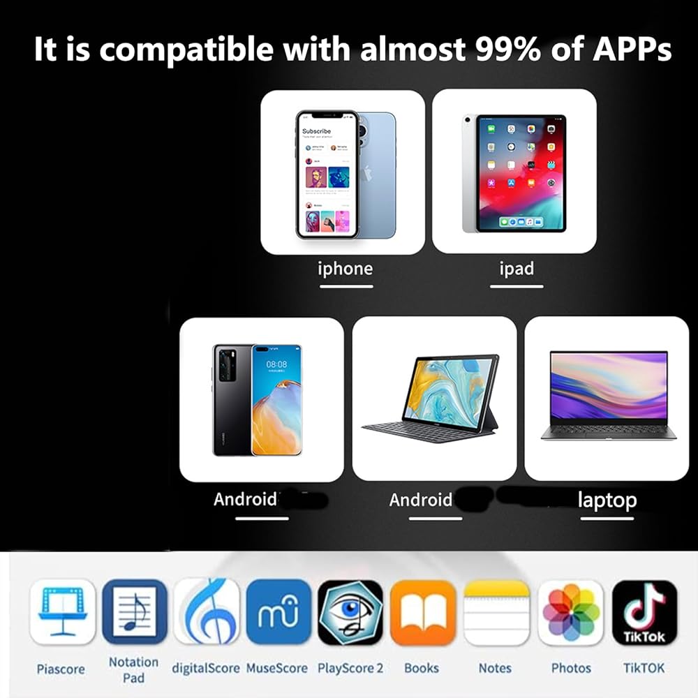 🏅【Hand & Foot Wireless Page Turner】This wireless Bluetooth page turner works with phones, iPads, and laptops. You can control it with your hand or foot to easily flip through digital sheet music, e-books, PPTs, photos, and short videos. Using foot control frees up your hands for other tasks, making it more convenient to use.