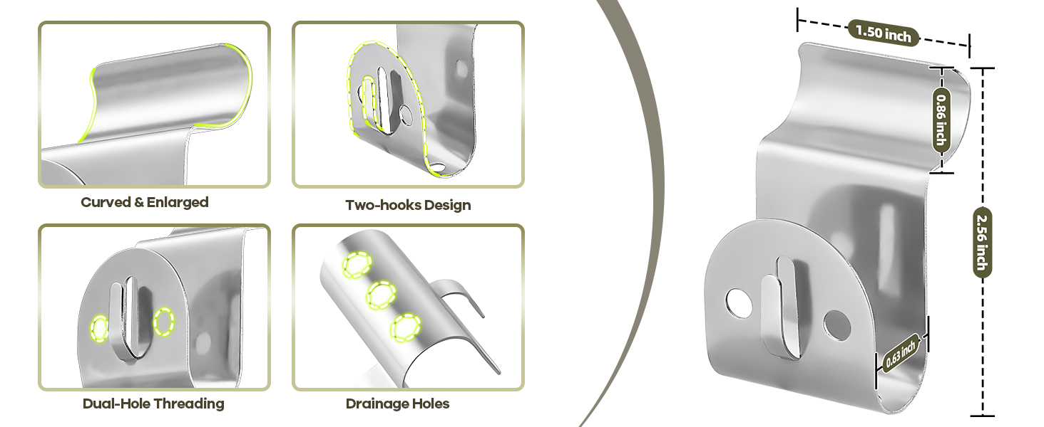 Double-hook Design: Goabroa Vinyl Siding Hangers features a double-hook design, allowing you to hang two items simultaneously. The larger hook can be utilized for hanging wreaths, while the smaller hook can be utilized for hanging string lights, resulting in a more ideal hanging and display effect