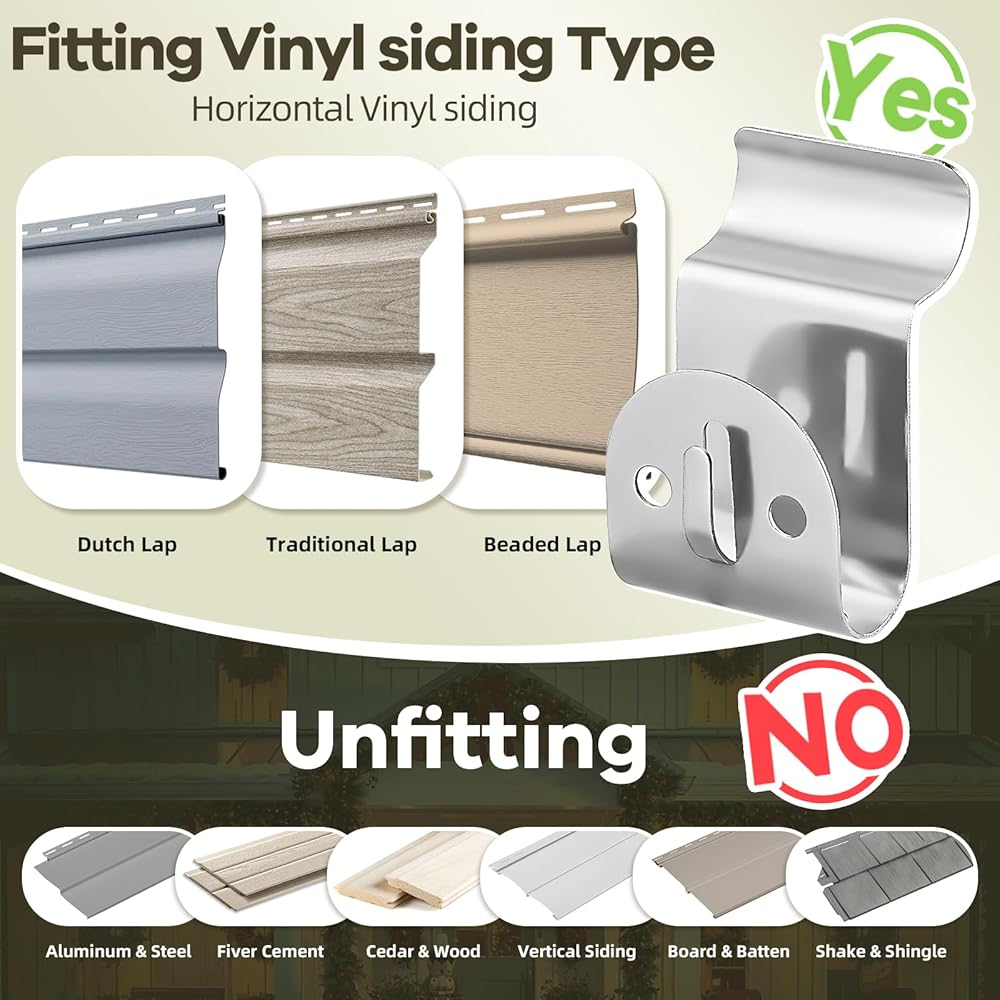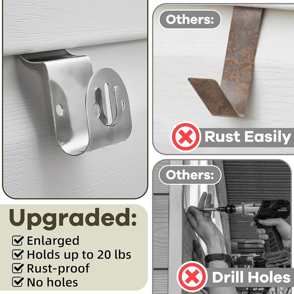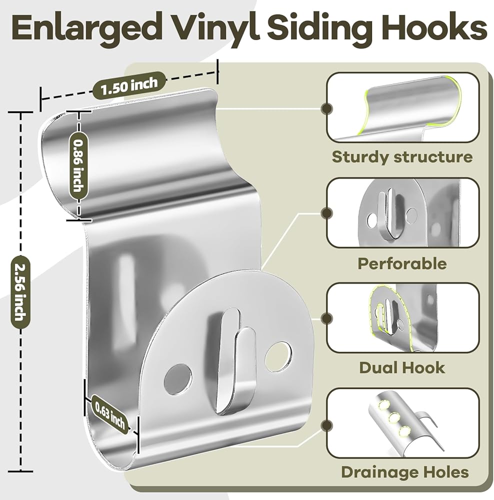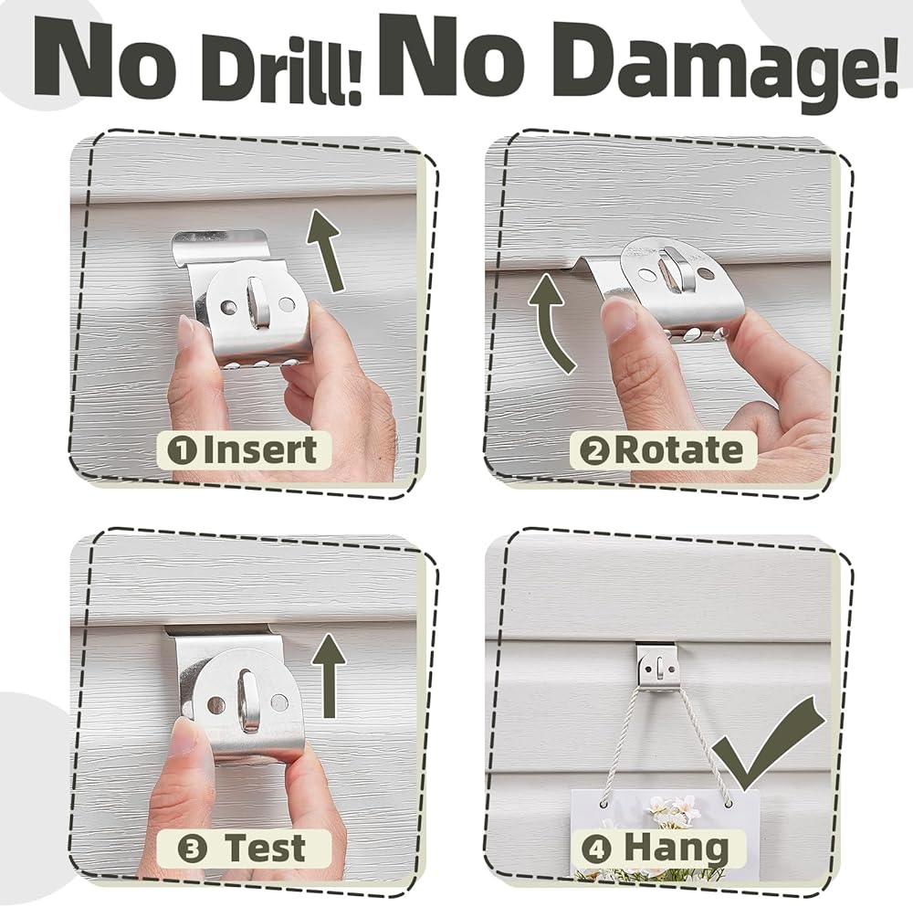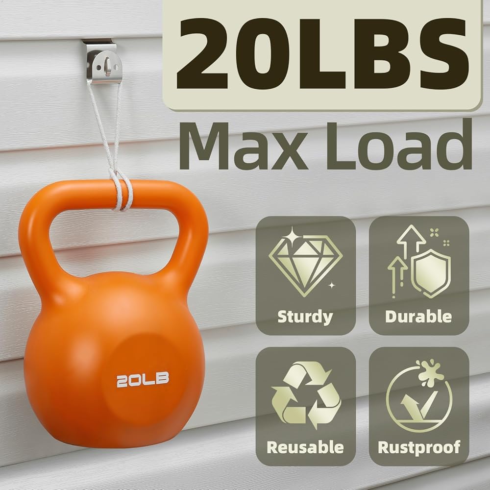 Supports up to 20 Pounds: Each heavy-duty siding clips to hang things is made of extra-thick 304 stainless steel, making it sturdy and durable. It is suitable for hanging slightly heavy decorations; it won't bend or break easily, making it suitable for long-term use