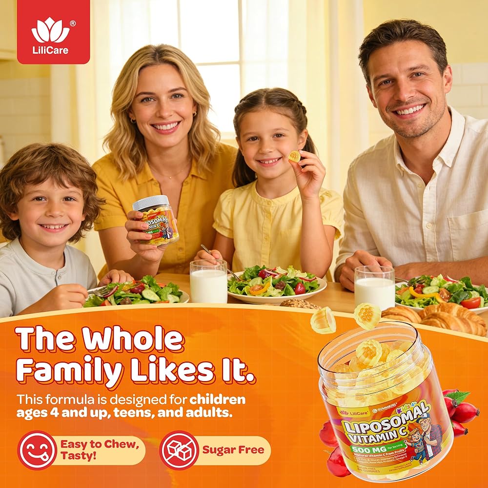 Immune Support & Iron Levels: Vitamins C, D, and E, along with Zinc, Iron, Selenium, Probiotics, and Omega-3, work synergistically with an 800 mg Immune & Antioxidant Blend (Elderberry, Echinacea, Propolis, β-Glucan, Rose Hips, Citrus Bioflavonoids) to support immune health & iron levels. Our liposomal vitamin C gummies are suitable for for kids, teens, and adults. 1 gummy for ages 4–8, 1–2 gummies for ages 9+. Helps your whole family navigate daily & seasonal challenges.