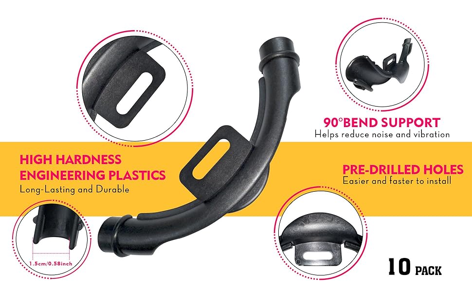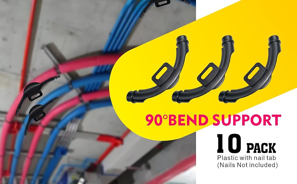 90° Bend Support: This pipe bracket provides rigid 90 degree bend support to your PEX system, maintaining precise angles to reduce noise, vibration, and water flow restrictions. Its sturdy design ensures efficient piping by preventing kinks and excessive bending, ideal for conduit and support setups.