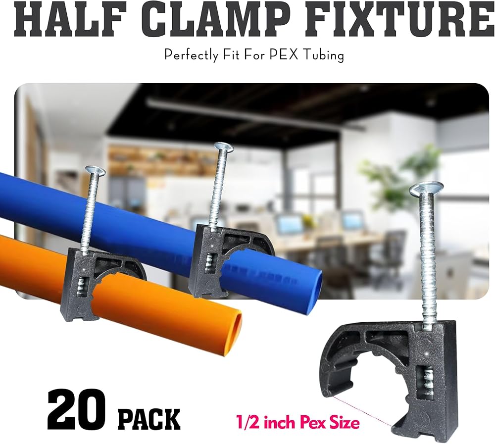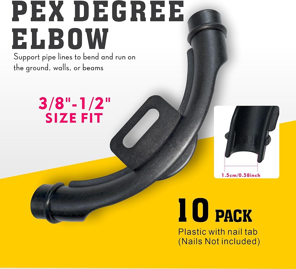 Meet Your Needs: This package includes 10 pieces of 1/2 inch PEX 90 degree elbow(installation nails not included) and 20Pcs Half Clamp Fixture J-Hook fittings, providing ample supply for your installation projects. You won't worry about running missing fittings mid-task, as all this pex fittings clamps pipe holder kit meet your needs.