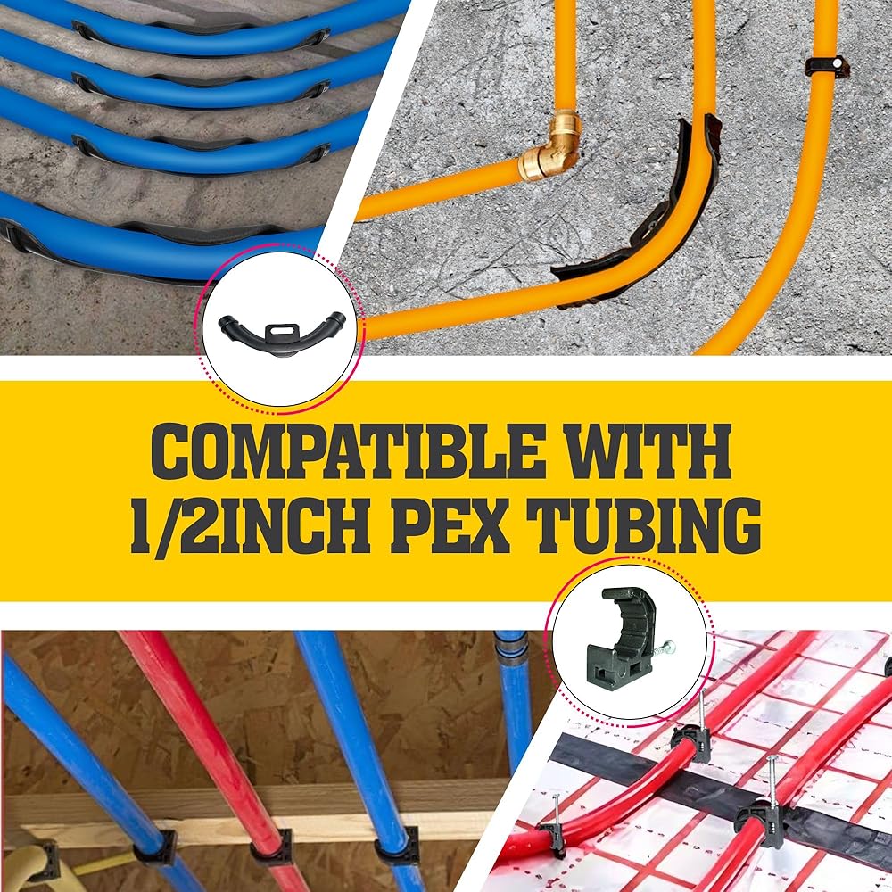 Sturdy Durability: Our 1/2 inch PEX clamps are made from robust engineering plastic, offering exceptional temperature and pressure resistance, plus corrosion protection for long-lasting quality. These black clamps add a professional look to your workspace while serving as reliable supports for conduit and connector applications.