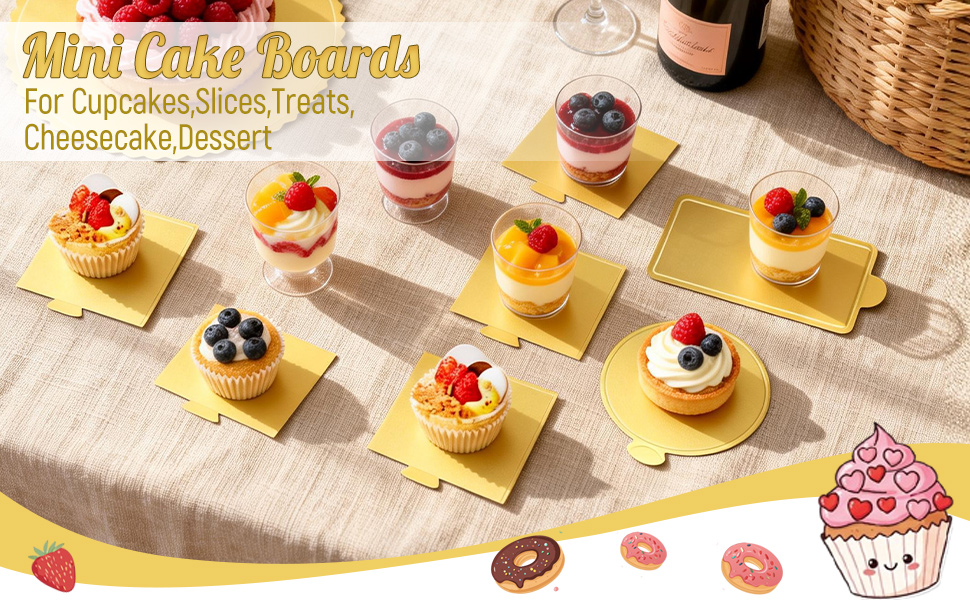 SIZE:The disposable gold cake boards size is 3.5 x 3.3 inch,good for most small desserts