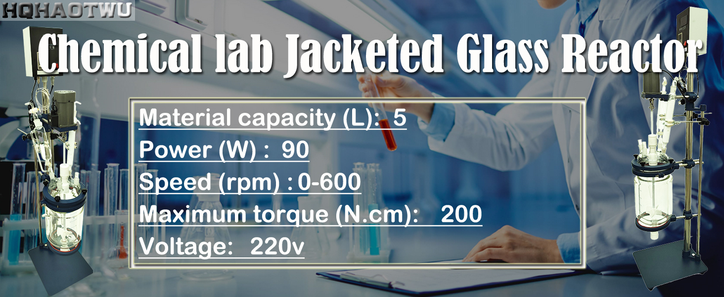 【Easy to Operate】The lab glass reactor is equipped with clear LCD screen. And there is a portable operation panel for you to set. And the speed can be adjusted according to your needs. The high accuracy display screen makes the device easier to operate even for the new beginners
