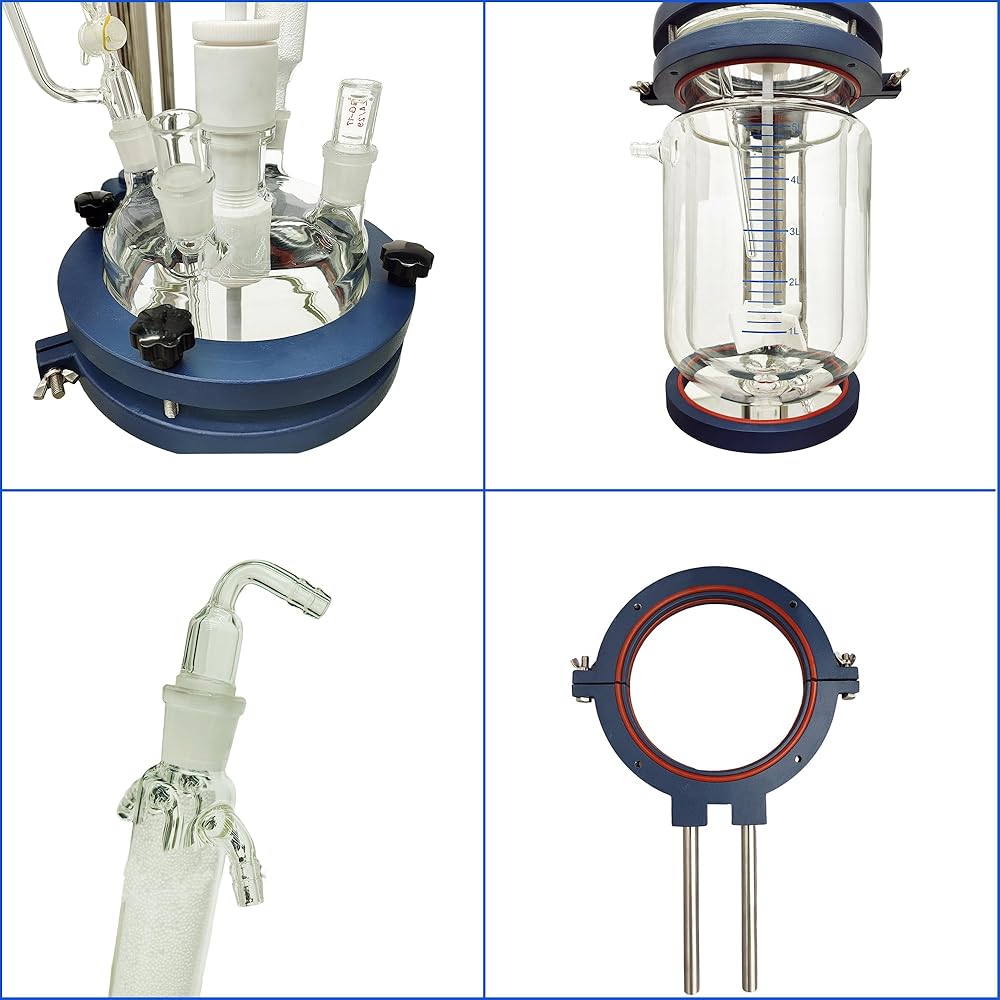 【With Strong Durability】This chemical glass reactor adopts premium stainless steel support frame. And the glass reactor is with durable borosilicate glass which has high heat resistance and strong impact resistance. So it is not only durable but also easy to clean