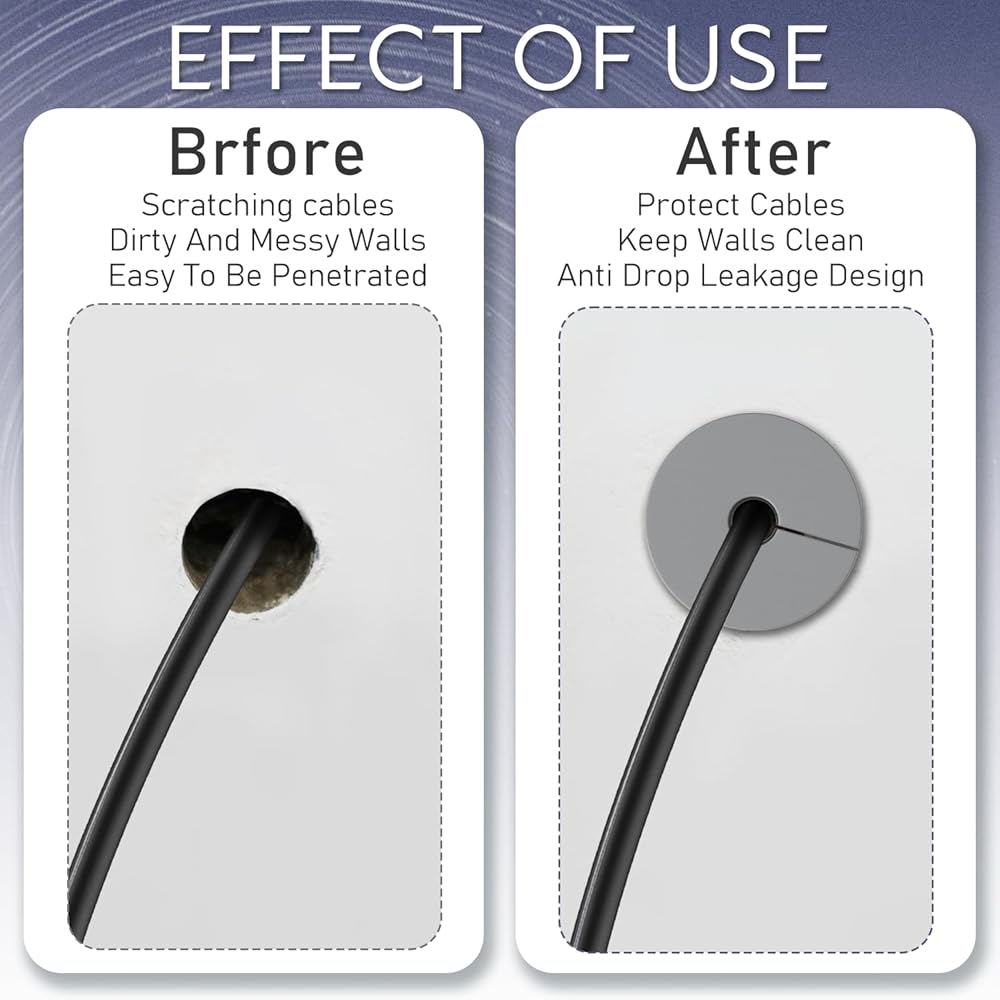 【Quality Silicone Material】The wall cable through cover is made of silicone, which is flexible and smooth, has a certain degree of flexibility, and won't be easy to be broken like other plastic wall bushings. The wall hole cover is dampproof and shockproof, can withstand wind and rain, and is suitable for long-term use.