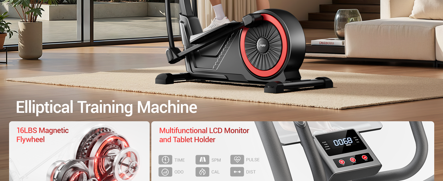Real-Time Fitness Monitoring: The built-in digital with our elliptical machine monitor provides instant access to essential workout data, including time, speed, distance, calories burned, and pulse rate. This comprehensive feedback allows you to set goals, monitor your progress, and adjust your workout intensity to maximize results. With all the information you need at your fingertips, you'll stay motivated and on track to achieve your fitness goals