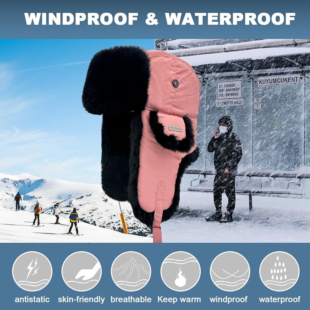 Waterproof & Windproof & Durable - Water-proof tested,equiped with the quality windproof nylon shell,it is helpful to make you feeling cozy in moist cold day specifically for outdoor sports or snowy/windy weather in cold winter.And the hat with ear flaps provides wind and frost protection for your face、ear and chin which are sensitive to cold weather