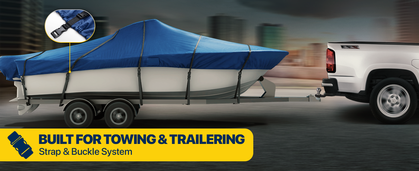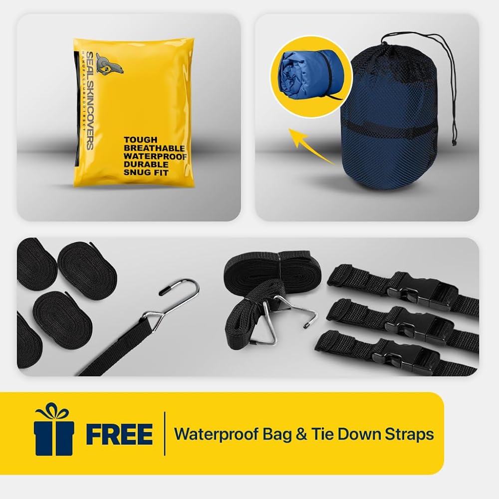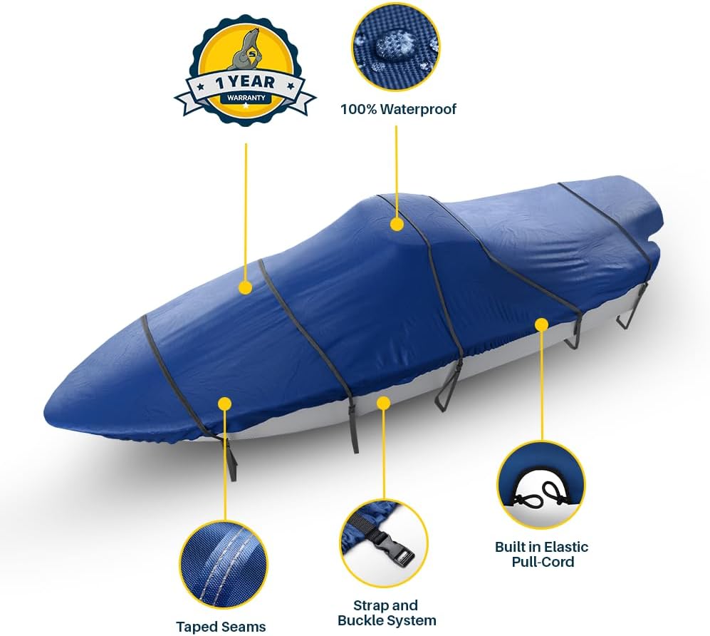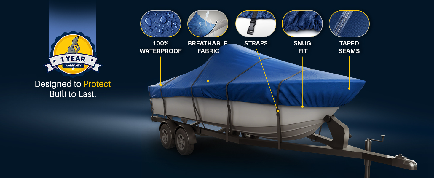 𝗪𝗔𝗧𝗘𝗥𝗣𝗥𝗢𝗢𝗙: Marine-grade polyester with double-stitched, taped seams ensures complete waterproof protection, shielding your boat from rain, snow & saltwater.