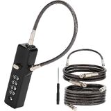 Package Includes: 1 cable combination lock, 3 steel cables of different lengths, 1 small flathead screwdriver, and a clear user manual, making installation and adjustment simple