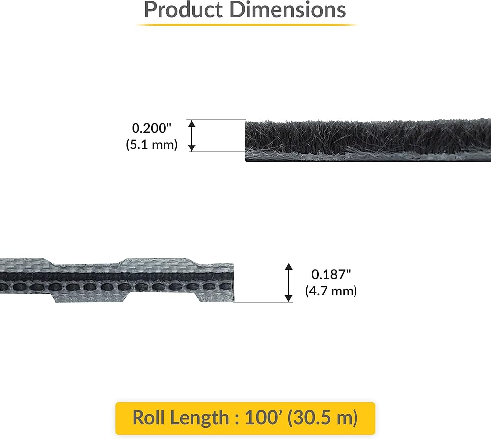BACKING WIDTH: Includes a 0.187" backing width intended to fit securely into narrow pile-retaining channels found in aluminum, vinyl, or wood window and door frames commonly used in residential or light commercial construction.