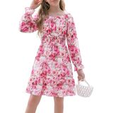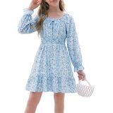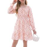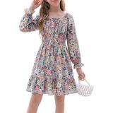 FEATURE: Girls' summer dresses, square neck, short puff sleeve, smocked, elastic waist, floral printing, elegant, trendy and lightweight design.