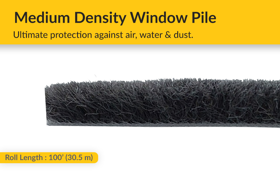 0.250" PILE HEIGHT: Offers a 0.250" high-density pile that compresses during door or window closure, forming a soft barrier to limit air movement, moisture contact, and dust intrusion through edge gaps in window and door assemblies.