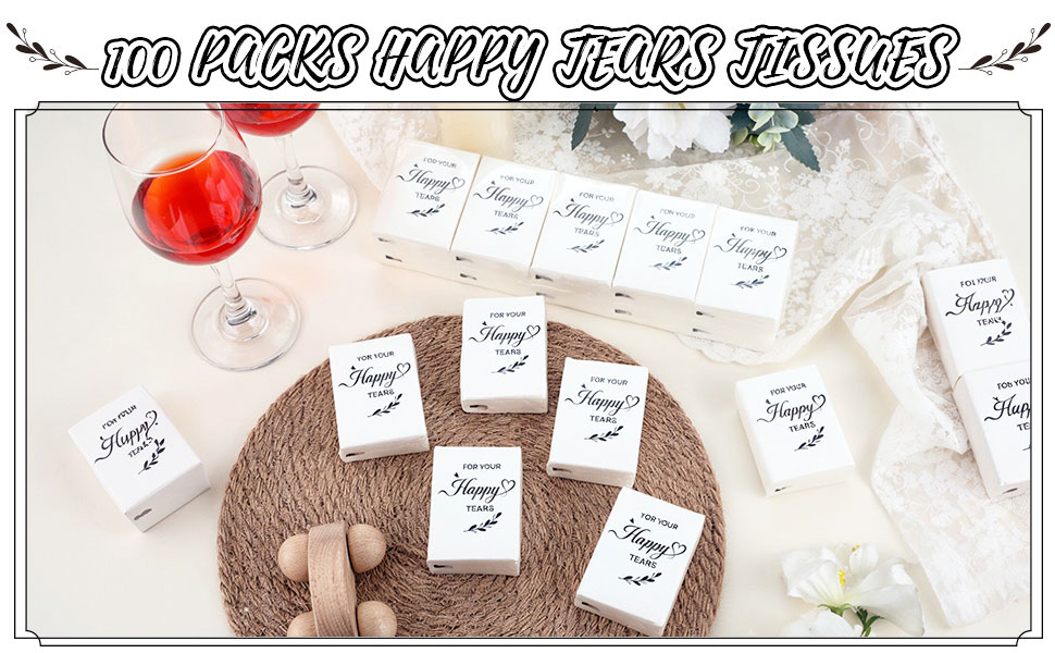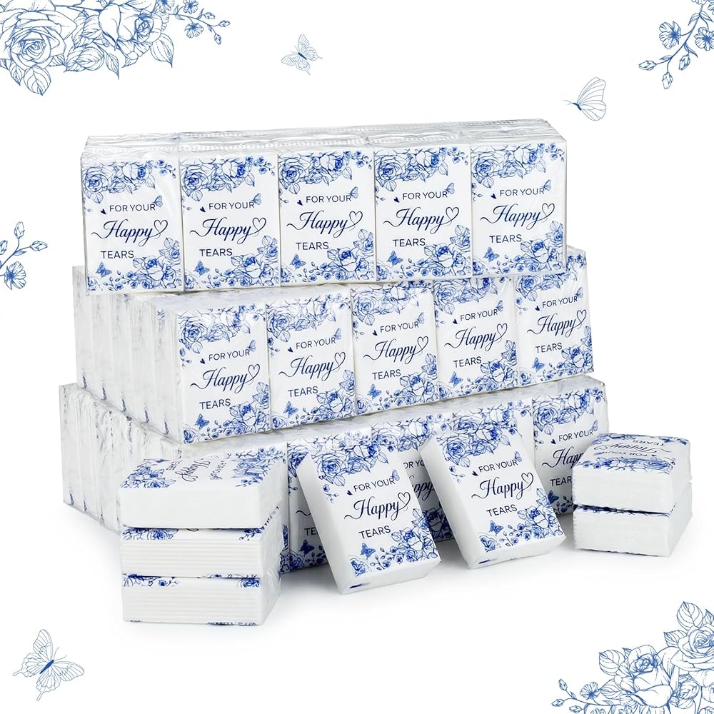 Ample Quantity & Convenient Pocket Size: Purse tissues includes 100 individually wrapped packs of wedding tissues, with 10 soft, 3-ply sheets in every pack. The tissues are thick and practical, making them a thoughtful addition to your special day. Measuring approximately 2.8 x 2.2 x 0.8 inches per pack, and each tissue unfolds to a generous 8 x 8 inches, they're just the right size for slipping into wedding welcome bags or pockets for easy access