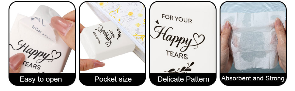 Soft & Skin-Friendly:Weddings often bring joyful tears. These tissue packs allow you and your guests to gently blot away tears while staying present in each heartfelt moment. Whether captured in photos or remembered in stories, these tissues quietly support the emotions that make your day unforgettable