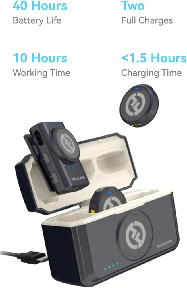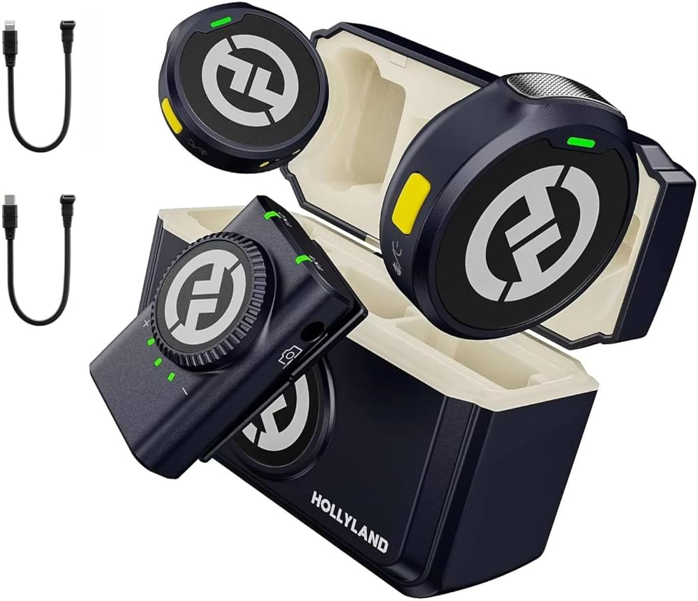 Hollyland Lark M2 Wireless Microphone for iPhone/Camera/Android/PC,48kHz/24-bit High Fidelity Audio,1000ft Range,Noise Cancelling,40H Use for YouTube,Vlog,Streaming,Video Recording(Camera Version)