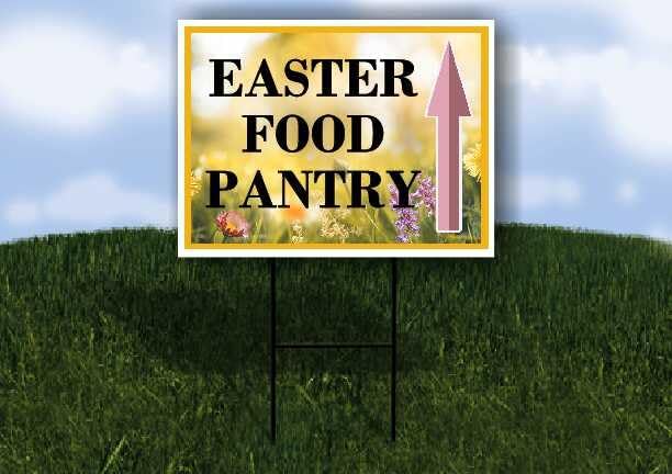 Easter Food Pantry Spring Flowers Yellow Field Directional Arrows A-Frame Double Sided 23x23 in. sign in Kuwait