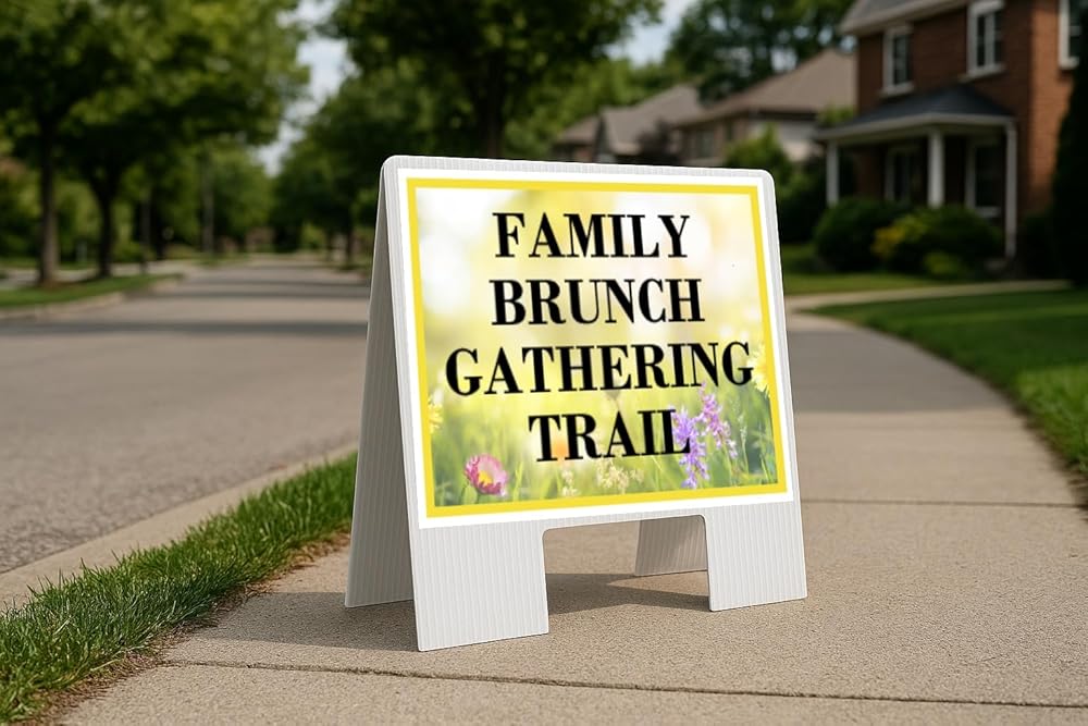 Family Brunch Gathering Trail Spring Flowers Yellow Field Up Arrows A-Frame Single Sided 23x23 in. sign in Kuwait