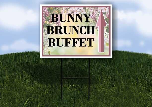 Bunny Brunch Buffet Spring Flowers Purple Lilac Up Arrows A-Frame Single Sided 23x23 in. sign in Kuwait
