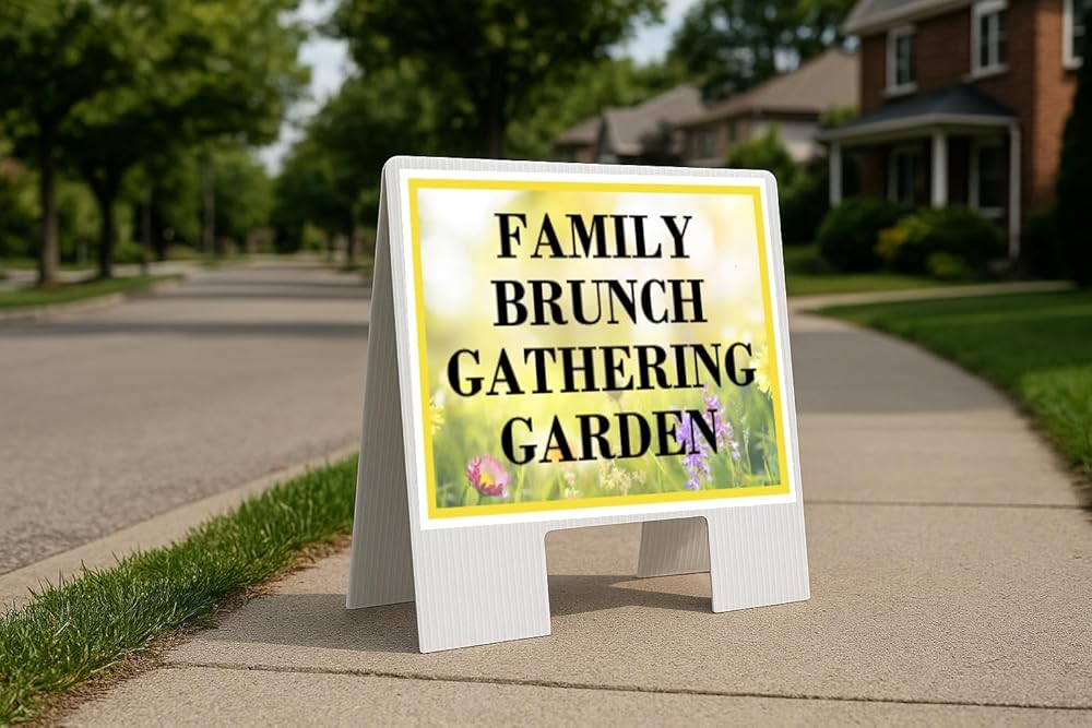 • Freestanding A-Frame Design – No stakes or extra hardware required; sets up in seconds and stands firmly on sidewalks, driveways, or entryways.