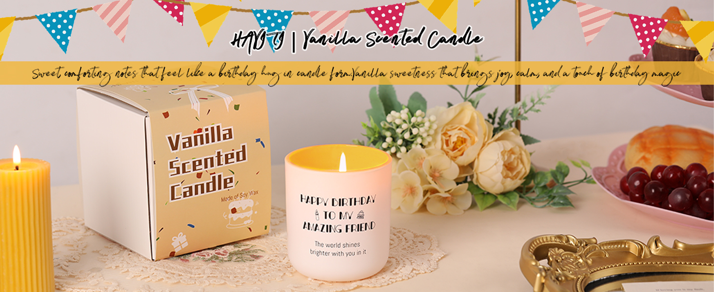 Vanilla Aroma: This soft vanilla scented happy birthday candle fills the room with a warm, sweet fragrance — comforting, cozy, and universally loved. A classic choice among scented candles for creating a happy birthday atmosphere.
