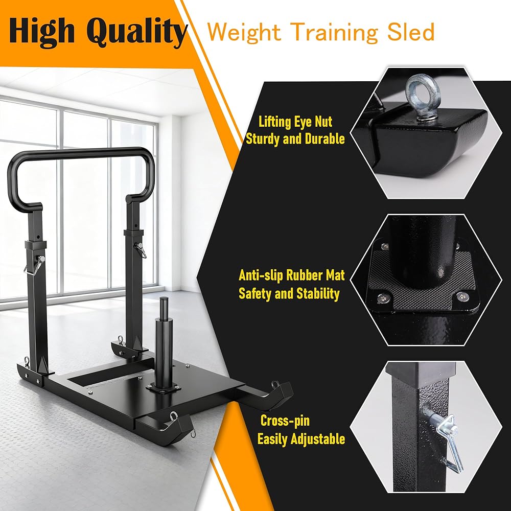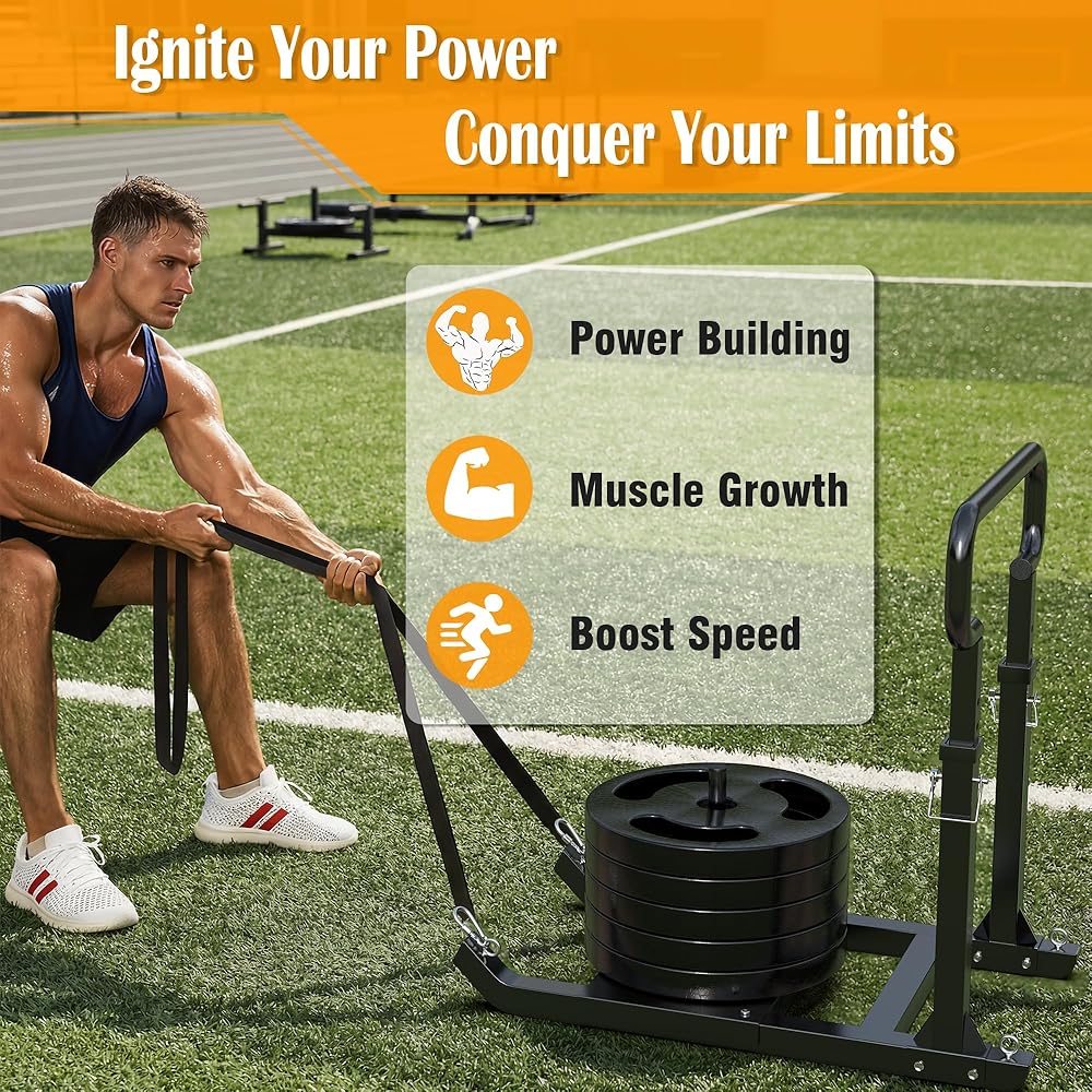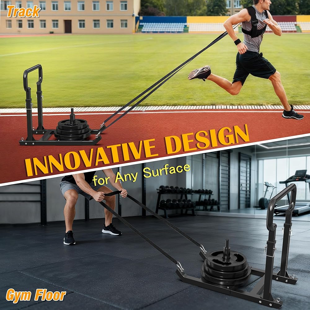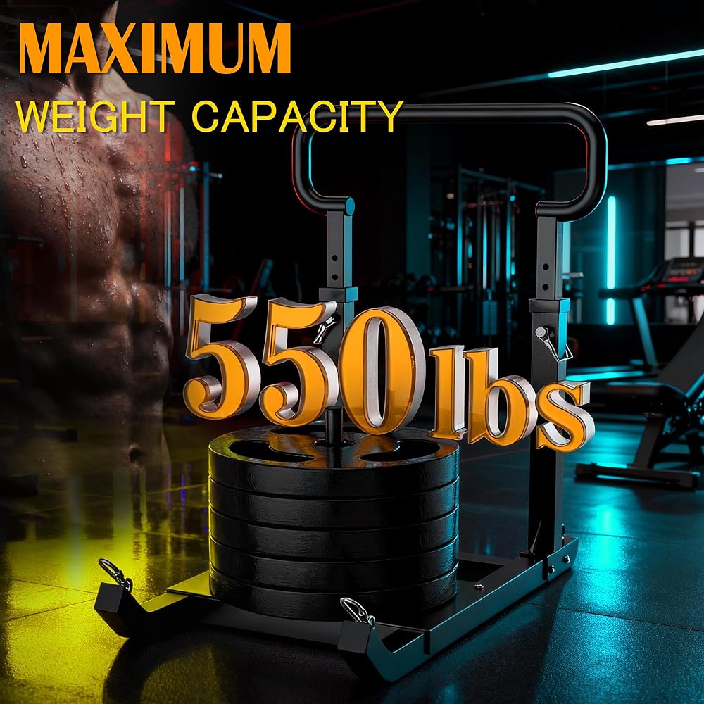 GanFindX Adjustable Weight Sled for Push & Pull Training, Heavy-Duty Fitness Sled with 5 Adjustable Handles, Improves Speed and Strength, Fits 1" & 2" Weight Plates