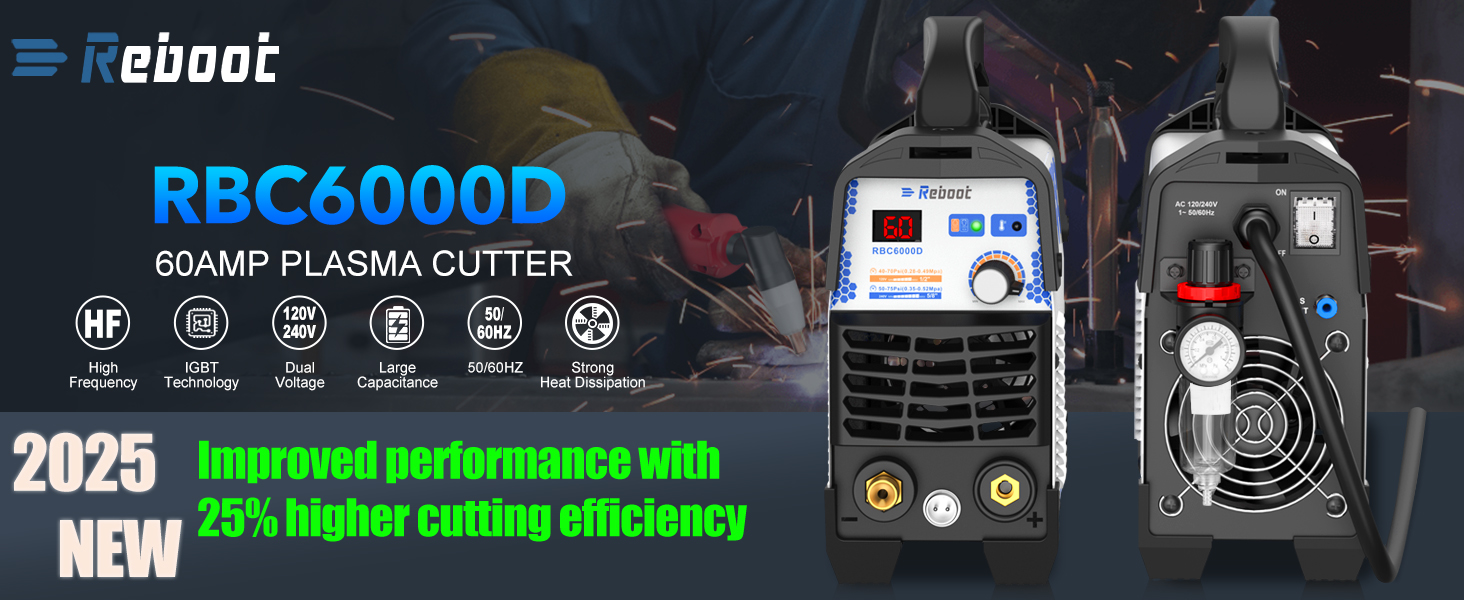 POWERFUL CUTTING THICKNESS: This plasma cutter handles 1/2" (12mm) steel at 120V/35A and 5/8" (16mm) at 240V/60A. Dual voltage auto-detection (10-35A@120V / 30-60A@240V) with PSI guidance (70-75 PSI / 0.48-0.52MPa). Optimized for quick, efficient cuts in automotive repairs and metal fabrication